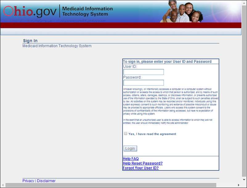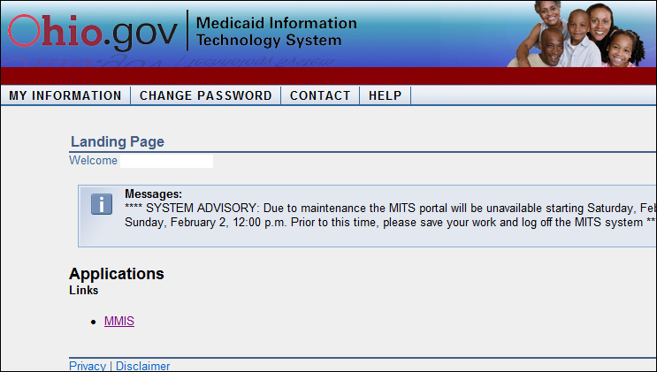 - The Medicaid Information Technology System (MITS) landing page will display.
