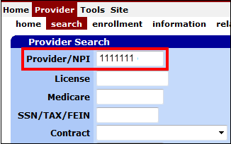 - Enter the 7-digit provider number in the Provider/NPI boxProvider/NPI box.