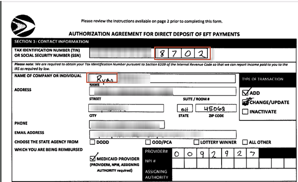 - In this example the document is an EFT form.