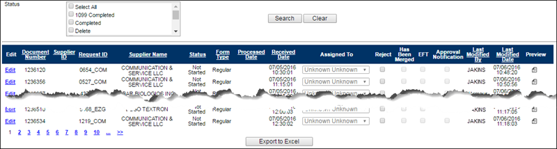 - In the event the document is blank (SIF, EFT, and W9) select "Delete" from the StatusStatus dropdown.
