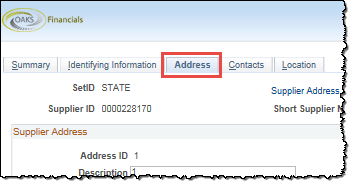 Address – a complete address must be provided. (Must match VIF, OAKS- Supplier module on the AddressAddress tab, MITS, and/or bank verification - where applicable).